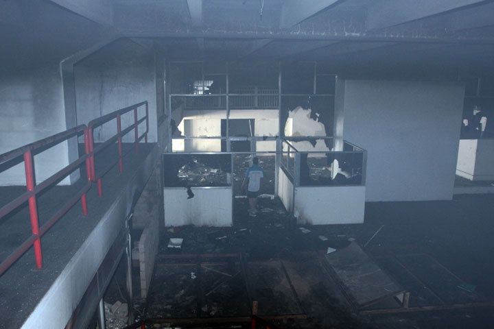 Todo estaba destruido. La candela arrasó con la tabiquería, algunas paredes, vidrios, cables de electricidad, libros, papelería y muchas otros materiales y mobiliario de oficina que quedó tras el saqueo previo al fuego.