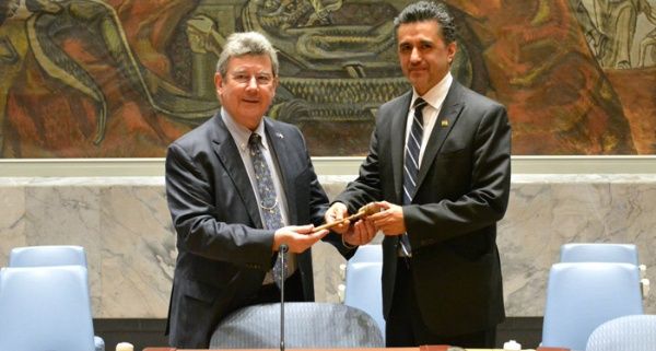 El representante permanente de Bolivia ante la Organización de Naciones Unidas (ONU), Sacha Llorenti, recibió este miércoles la presidencia del Consejo de Seguridad por el periodo de un mes, a mano de su colega de Uruguay, Elbio Rosselli.