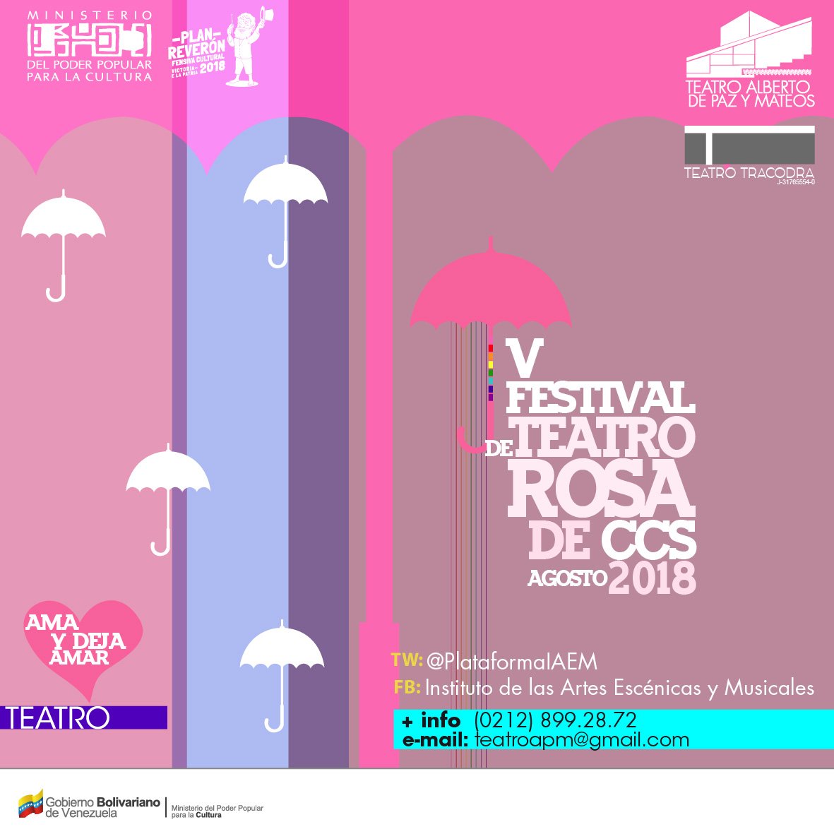¡Convocatoria abierta! 5to. Festival de Teatro Rosa de Ccs 2018 al correo festivaldeteatrorosadeccs@gmail.com